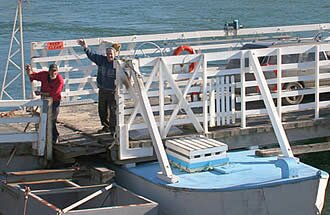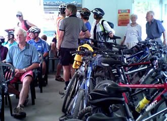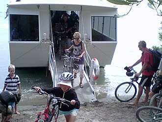 The ferry is well designed to do the job and it is easy to push your bike across the shore and onto or off the boat. On board there are well designed racks that hold the bikes and almost enough seats for all the passengers. If the ferry is full you and your bike may not have an official place to park but it doesn't matter as the trip only takes a few minutes, including a brief excursion up or down the estuary for a mini sightseeing cruise on the way across.