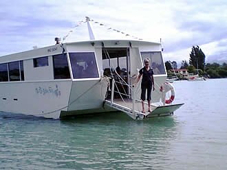 You are about to embark on a short sea voyage. Yes, it is true that not many cycling trips involve a boat ride but this civilised adventure does take you aboard a splendid craft, The Floating Fairy, which commutes back and forth across the Mapua estuary outlet.